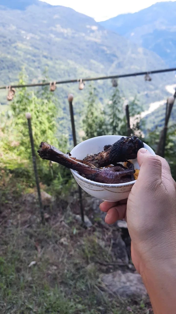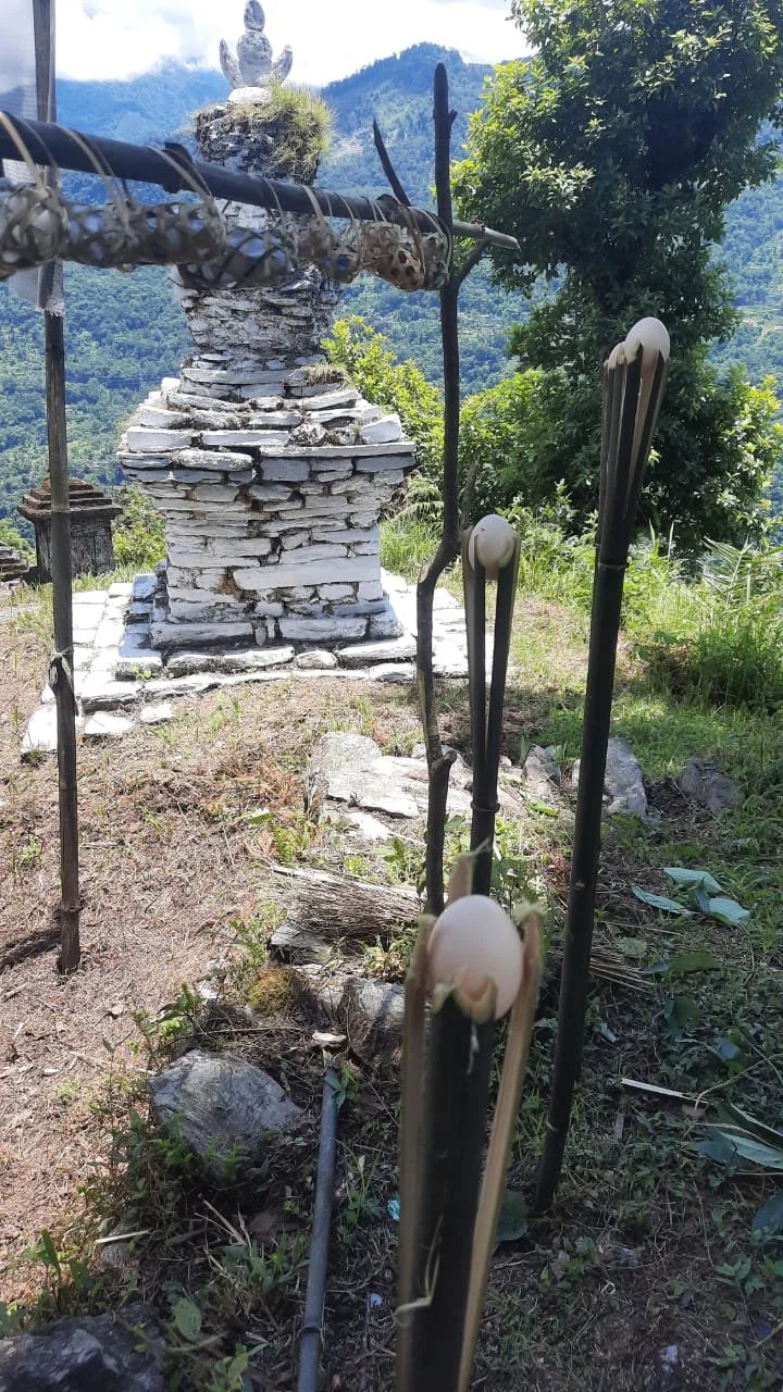Ruvi-Kyon/Ruma-Kyon, an egg is brought by each family residing in the village to conduct augury (divination). (Photo taken at Nooth Kung, Sangdong, North Sikkim.)