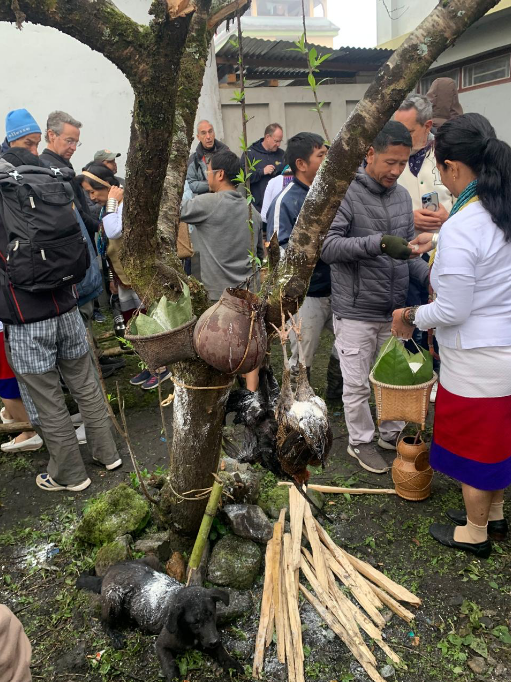 Yugyang of Hibu village. This photograph was taken during Myoko, the spring festival celebrated by the Apatani community in the month of March (Myoko Pwlo). Alongside the Myoko babo (ritual poles) and nago (community shrines), the yugyang is regarded as an enduring symbol of Apatani Tanii cultural life. This image captures the ritual event known as Alyi Lalonii—the bringing of a pig to receive blessings prior to sacrifice—and Supung, both of which take place early in the morning at the clan’s yugyang. These rituals form part of the broader ceremonial cycle of Myoko, which emphasizes communal harmony, agricultural well-being, and spiritual continuity.